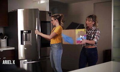 Black haired babe and lesbian brown-haired are about to bang like crazy